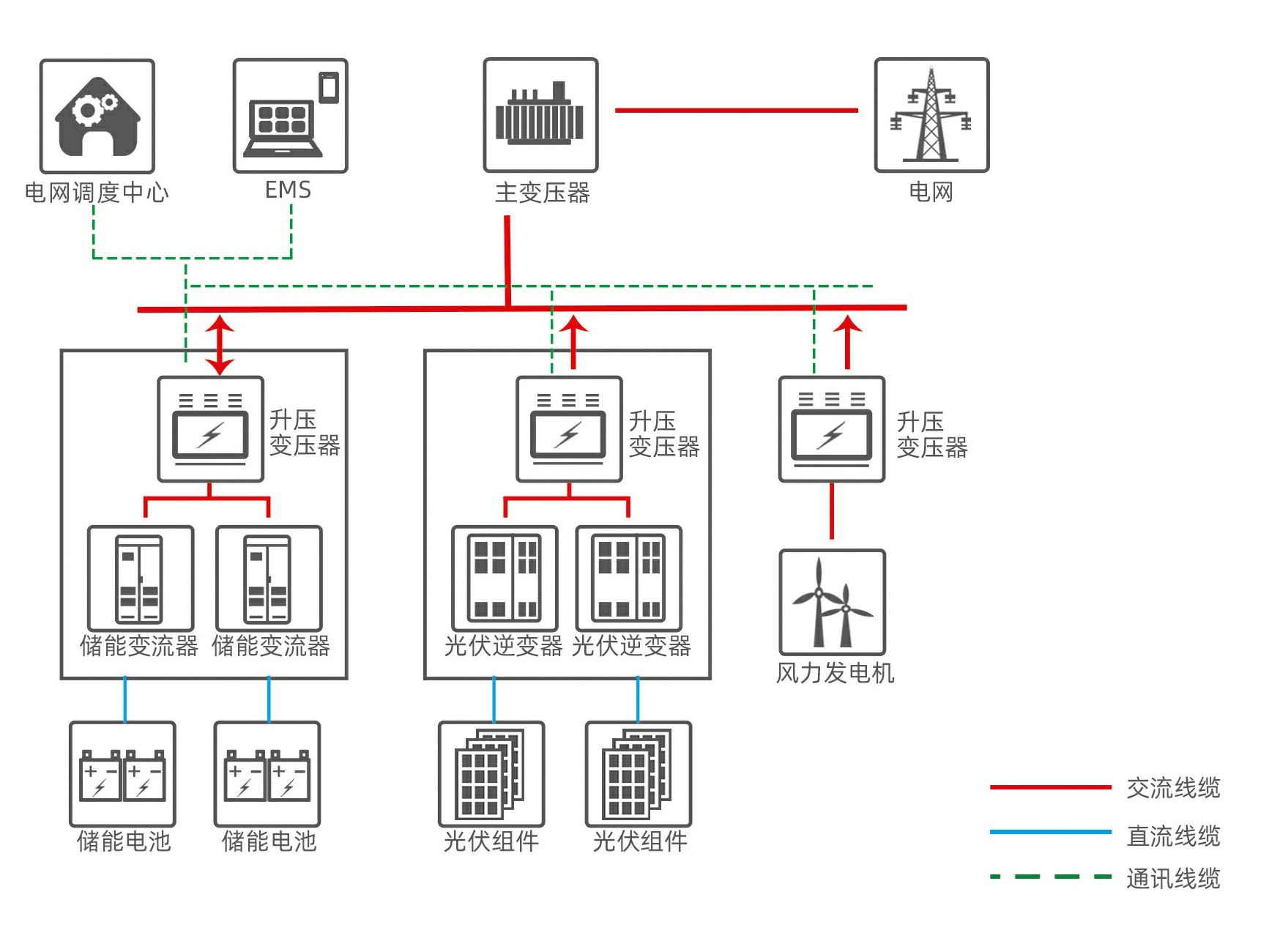 交流母线连接,适合集中管理减少弃光、弃风,提高经济性
